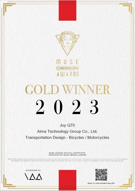 圖:愛瑪開心Q70榮獲美國MUSE設(shè)計(jì)金獎(jiǎng)