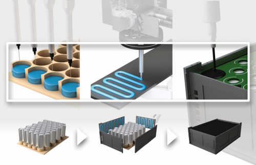 另一方面,在汽車生產(chǎn)中,由于產(chǎn)量大、節(jié)拍高,基本都選擇機(jī)器人自動點膠,包括電池包、電控板等部件的制造。雖然自動點膠工藝效率高,但其成本與技術(shù)難度也很大,要保證膠水均勻涂抹在需要連接的部件表面上,控制每次的注滴量,使部件之間的連接牢固均勻,以提高電池包的安全性和可靠性,同時還可降低產(chǎn)品的噪音和震動,提高車輛的舒適性。