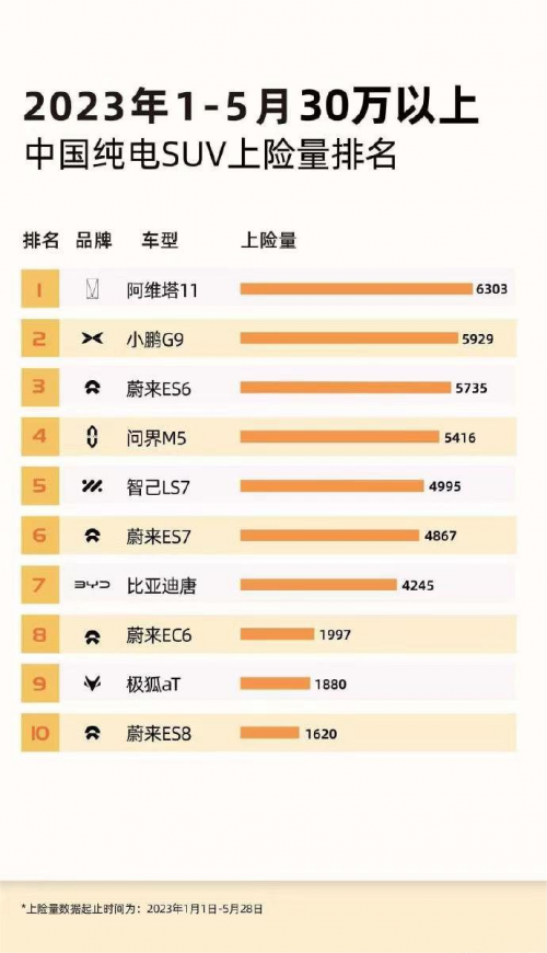 除了阿維塔銷量的穩(wěn)步攀升,阿維塔的上險(xiǎn)量在一眾造車新勢力中也是位居前列,并開始追逐老牌強(qiáng)者的步伐。其中在今年的1-5月,阿維塔11以6303的累計(jì)上險(xiǎn)量位居30萬以上中國純電SUV上險(xiǎn)量排行榜的第三名。阿維塔11憑借著其強(qiáng)大的智駕表現(xiàn)和優(yōu)越的性能,成為用戶青睞的對(duì)象。
