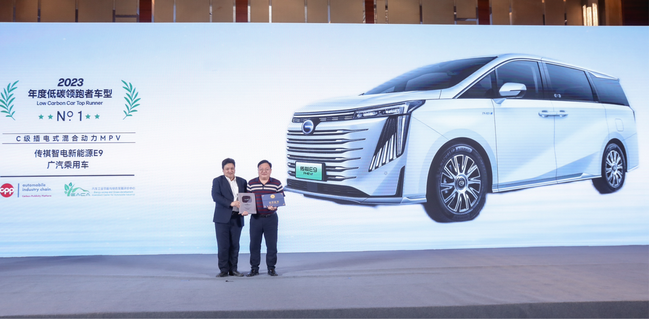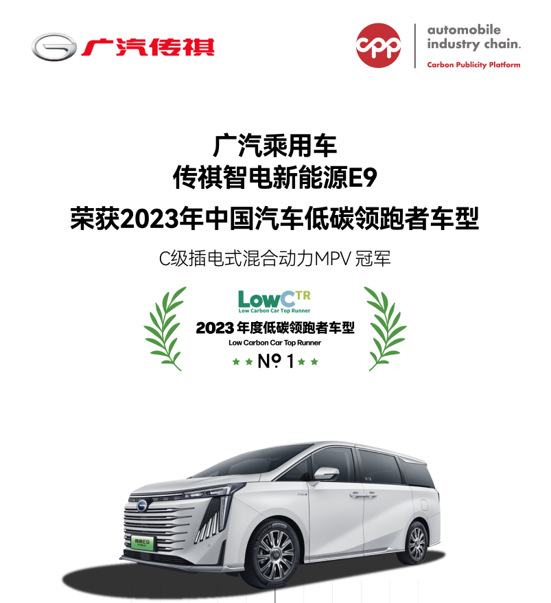 6月19日,由中汽碳(北京)數(shù)字技術(shù)有限公司舉辦的“2023年汽車工業(yè)節(jié)能與綠色發(fā)展評(píng)價(jià)中心年度成果分享會(huì)”在北京成功召開,并基于CPP平臺(tái)公布了首批近1400款車型碳足跡數(shù)據(jù),其中,傳祺智電新能源E9,以同級(jí)最低、且低于行業(yè)平均水平16.9%碳排放水平,榮膺“C級(jí)插電式混合動(dòng)力MPV冠軍”,榮獲“2023中國(guó)汽車低碳領(lǐng) 跑者車型”。