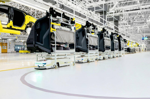 在總裝車間,配備大量高度自動(dòng)化和智能化設(shè)備,人機(jī)協(xié)作締造高質(zhì)量產(chǎn)品,保證Eletre出廠前的品質(zhì)一致性。自動(dòng)搬運(yùn)機(jī)器人AGV的運(yùn)用,極大提高分揀速度和準(zhǔn)確性,降低因人工操作導(dǎo)致的誤差;玻璃自動(dòng)涂膠設(shè)備,3D膠型檢測(cè)、機(jī)器人自動(dòng)涂膠、3D視覺(jué)引導(dǎo)裝配等設(shè)備,將智能制造融入每一個(gè)環(huán)節(jié),裝配后零部件貼合度和細(xì)節(jié)處理更好。