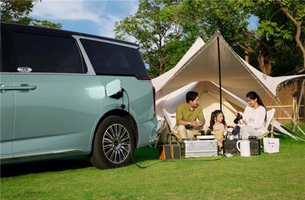 值得一提的是,大家MIFA9支持雙向充放電,除了直流快充+交流慢充,還自帶V2L外放電功能(6.6kW),即便你攜家人在戶外露營,亦可用電無憂。舉個例子,你可以用它給烤箱、咖啡機(jī)等供電,為全家出游增添更多樂趣。