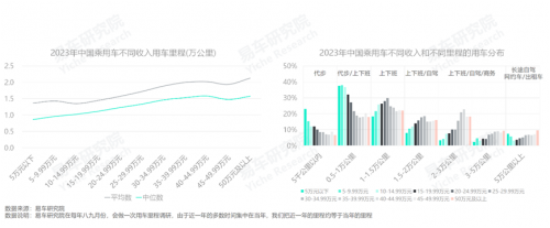 用車?yán)锍膛c家庭收入存在明顯的正向關(guān)系:近一年,超七成家庭可支配收入低于15萬(wàn)元的工薪階層,平均用車?yán)锍痰陀?.5萬(wàn)公里以內(nèi),以代步和上下班為主;家庭可支配收入15-50萬(wàn)元的中產(chǎn)階層的平均用車?yán)锍坛^(guò)1.6萬(wàn)公里,兼顧部分自駕游;家庭可支配收入高于50萬(wàn)元的富豪階層的平均用車?yán)锍坛^(guò)2萬(wàn)公里,與美國(guó)水平接近,兼顧更多商務(wù)、長(zhǎng)途自駕;