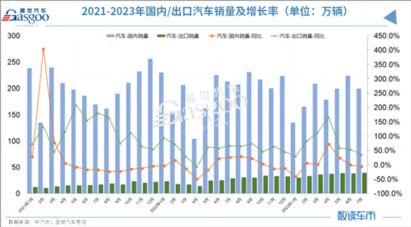 根據(jù)“中汽協(xié)”數(shù)據(jù),2023年7月,中國汽車出口39.2萬輛,出口規(guī)模再創(chuàng)歷史新高;前7個(gè)月,中國汽車?yán)塾?jì)出口253.3萬輛,同比增長67.9%。其中,傳統(tǒng)燃油汽車出口量為189.7萬輛,同比增長51.5%;新能源汽車出口63.6萬輛,同比增長1.5倍,出口增勢強(qiáng)勁。
