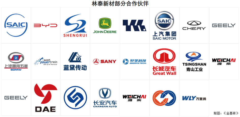 憑借優(yōu)異的產(chǎn)品性能與品質(zhì),林泰新材已與多家國內(nèi)主要的自動變速器廠商建立了穩(wěn)固的供貨關(guān)系,包括上汽變速器、萬里揚(yáng)、東安汽發(fā)、吉利變速器、南京邦奇、盛瑞傳動、藍(lán)黛變速器等,并已進(jìn)入麥格納的供應(yīng)鏈體系。