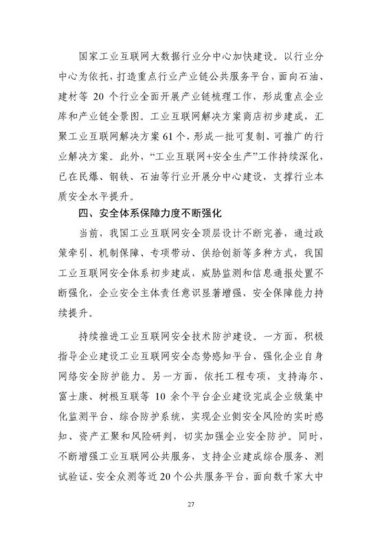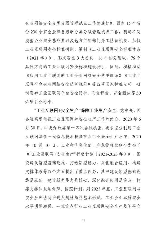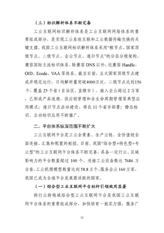從無(wú)到有,四大體系建設(shè)取得突破性進(jìn)展。在市場(chǎng)推動(dòng)和政策指引下,網(wǎng)絡(luò)體系建設(shè)邁上了新臺(tái)階,高質(zhì)量的外網(wǎng)建設(shè)覆蓋全國(guó)300多個(gè)地市,連接工業(yè)企業(yè)18萬(wàn)家。TSN、5G等新型網(wǎng)絡(luò)技術(shù)推動(dòng)企業(yè)內(nèi)網(wǎng)改造力度不斷加大。工業(yè)互聯(lián)網(wǎng)標(biāo)識(shí)解析實(shí)現(xiàn)了從0到1的跨越,五大頂級(jí)節(jié)點(diǎn)建成并穩(wěn)定運(yùn)行,標(biāo)識(shí)注冊(cè)量突破400億。平臺(tái)體系建設(shè)取得積極進(jìn)展,15個(gè)雙跨平臺(tái)引領(lǐng)示范作用日益顯著,具有一定行業(yè)區(qū)域影響力的工業(yè)互聯(lián)網(wǎng)平臺(tái)超過(guò)100家,服務(wù)企業(yè)超160萬(wàn)家,同時(shí)平臺(tái)連接的重要工業(yè)設(shè)備已經(jīng)超過(guò)7600萬(wàn)臺(tái)/套。數(shù)據(jù)體系建設(shè)取得了積極成效,從規(guī)劃建設(shè)到落地推動(dòng),全國(guó)一盤棋的國(guó)家工業(yè)互聯(lián)網(wǎng)大數(shù)據(jù)體系正在匯聚成形,大數(shù)據(jù)中心體系覆蓋企業(yè)已經(jīng)超700萬(wàn)家。安全體系建設(shè)快速推進(jìn),威脅監(jiān)測(cè)和信息通報(bào)的處置不斷強(qiáng)化,企業(yè)安全的主體責(zé)任意識(shí)逐步增強(qiáng),國(guó)家、省、企業(yè)三級(jí)聯(lián)動(dòng)的技術(shù)監(jiān)測(cè)體系在全國(guó)推廣。
