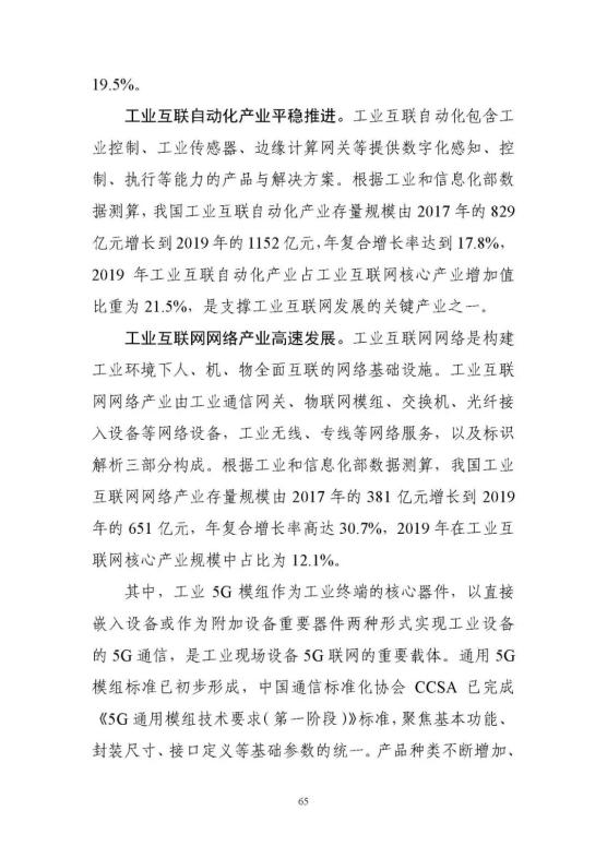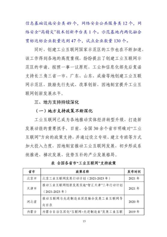 從上到下,政策環(huán)境持續(xù)優(yōu)化。2017年《關(guān)于深化“互聯(lián)網(wǎng)﹢先進(jìn)制造業(yè)”發(fā)展工業(yè)互聯(lián)網(wǎng)的指導(dǎo)意見(jiàn)》正式發(fā)布,在工業(yè)互聯(lián)網(wǎng)專項(xiàng)工作組的統(tǒng)籌協(xié)調(diào)和大力推動(dòng)下,實(shí)施20182020年工業(yè)互聯(lián)網(wǎng)三年行動(dòng)計(jì)劃。今年年初,工信部又發(fā)布了2021-2023年工業(yè)互聯(lián)網(wǎng)三年行動(dòng)計(jì)劃,聚焦基礎(chǔ)設(shè)施、融合應(yīng)用、技術(shù)創(chuàng)新、產(chǎn)業(yè)生態(tài)、安全保障五大方面重點(diǎn)任務(wù),部署了11個(gè)重點(diǎn)行動(dòng)和10個(gè)重點(diǎn)工程。工信部先后出臺(tái)11項(xiàng)政策,針對(duì)性推動(dòng)網(wǎng)絡(luò)、平臺(tái)、數(shù)據(jù)、安全四大領(lǐng)域重點(diǎn)工作。地方支持力度不斷加大,各具特色的地方政策有效覆蓋全國(guó)31個(gè)?。▍^(qū)、市)。實(shí)施工業(yè)互聯(lián)網(wǎng)創(chuàng)新發(fā)展工程,帶動(dòng)總投資近700億元,建設(shè)了一大批公共服務(wù)平臺(tái),形成了一大批具有標(biāo)桿效應(yīng)的試點(diǎn)示范項(xiàng)目,建設(shè)了多個(gè)“5G﹢工業(yè)互聯(lián)網(wǎng)”產(chǎn)業(yè)示范基地。
