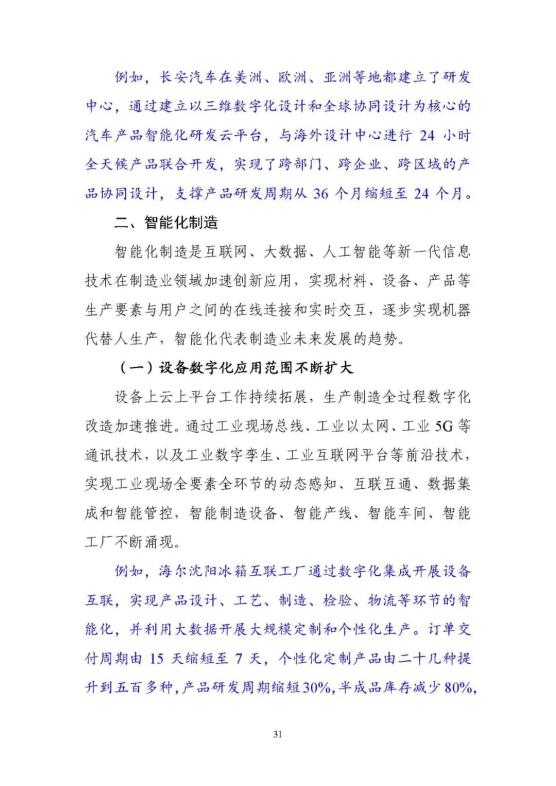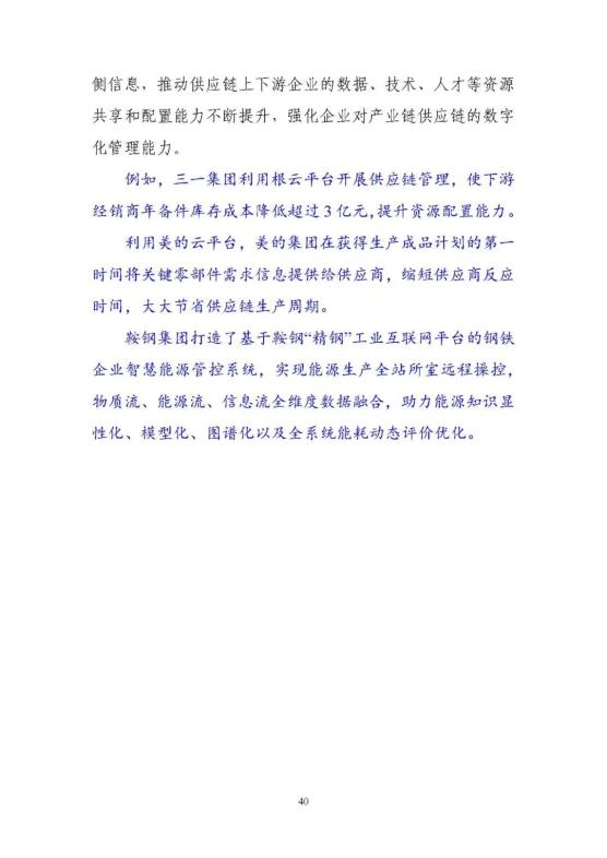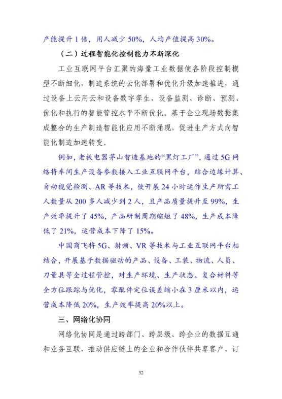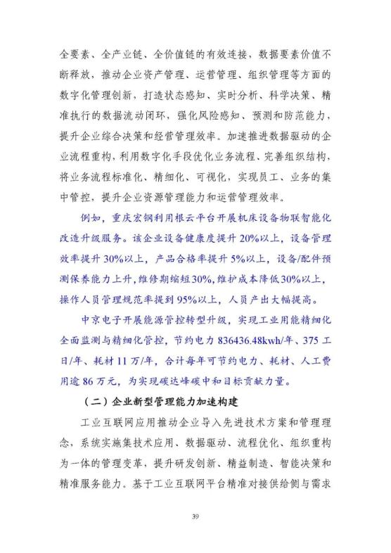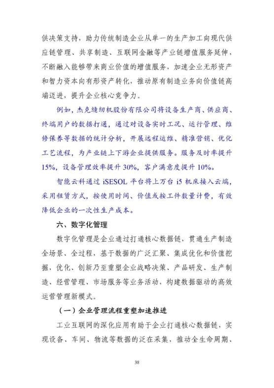 從點(diǎn)到面,融合應(yīng)用新動(dòng)能快速壯大。工業(yè)互聯(lián)網(wǎng)的應(yīng)用從龍頭企業(yè)內(nèi)部拓展到產(chǎn)業(yè)鏈上下游,正在推動(dòng)形成大中小企業(yè)融通創(chuàng)新的新格局,應(yīng)用的范圍覆蓋了鋼鐵、機(jī)械、電力、交通、能源等40多個(gè)國(guó)民經(jīng)濟(jì)重點(diǎn)行業(yè)。工業(yè)互聯(lián)網(wǎng)應(yīng)用正在從研產(chǎn)供銷服務(wù)各個(gè)環(huán)節(jié),向全環(huán)節(jié)、全流程綜合集成應(yīng)用和多領(lǐng)域系統(tǒng)創(chuàng)新延伸,形成了平臺(tái)化設(shè)計(jì)、智能化制造、網(wǎng)絡(luò)化協(xié)同、個(gè)性化定制、數(shù)字化管理等六大典型模式,有效支撐了我國(guó)制造業(yè)高端化、智能化、綠色化發(fā)展。