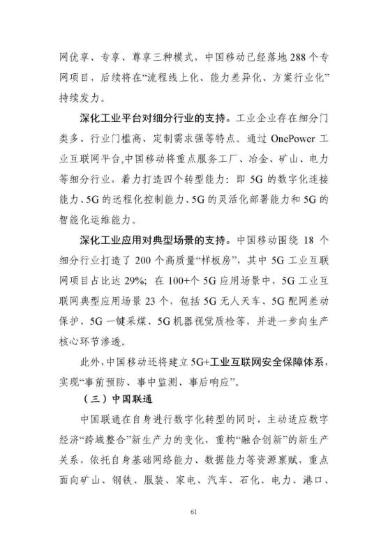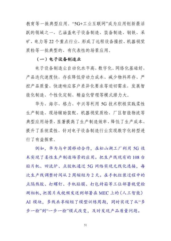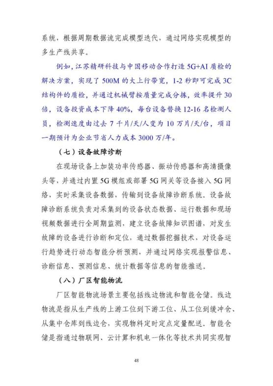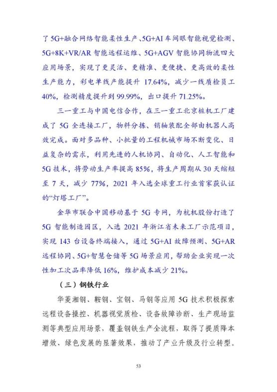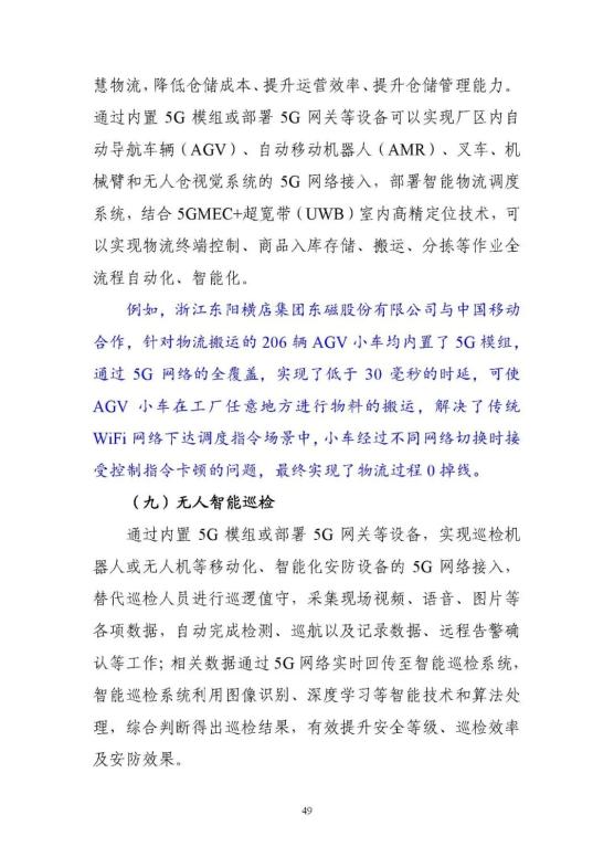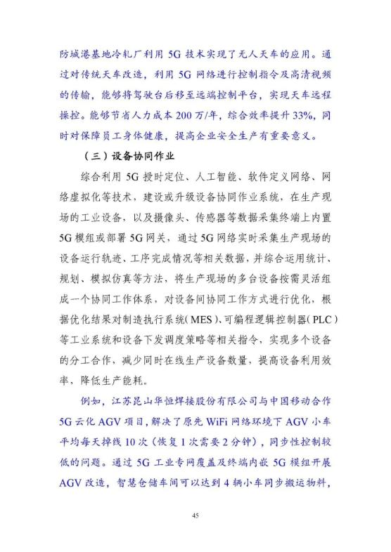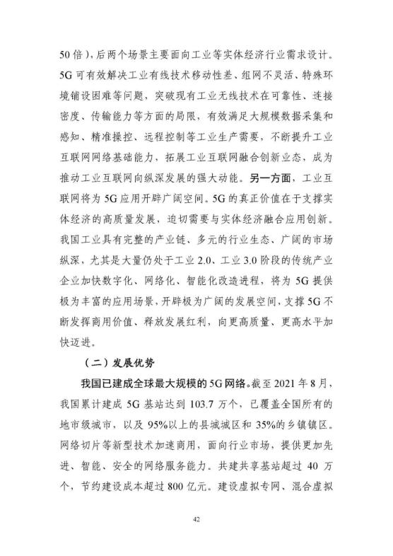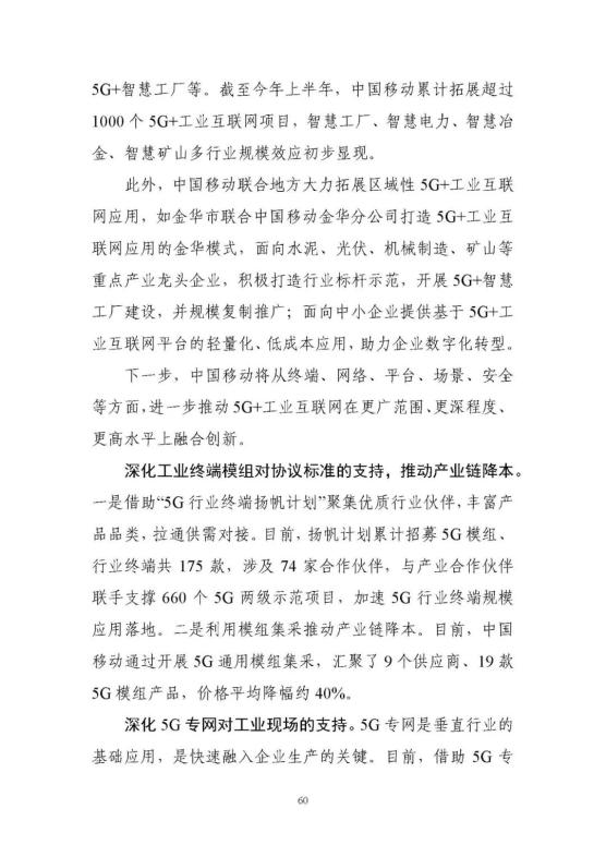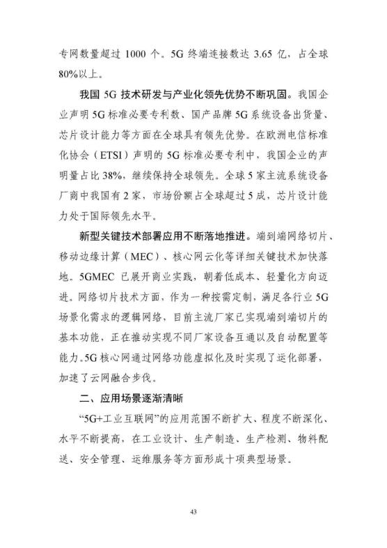 從外到內(nèi),5G賦能構(gòu)筑全球領(lǐng)先優(yōu)勢(shì)。依托我國(guó)全球最大規(guī)模的5G網(wǎng)絡(luò),充分發(fā)揮基礎(chǔ)電信企業(yè)、工業(yè)企業(yè)、設(shè)備企業(yè)、軟件企業(yè)的協(xié)同優(yōu)勢(shì),構(gòu)建了人、機(jī)、物、系統(tǒng)的全面連接,全國(guó)5G﹢工業(yè)互聯(lián)網(wǎng)在建項(xiàng)目已經(jīng)超過(guò)1800個(gè),率先在電子制造、裝備制造、鋼鐵、采礦、電力五大行業(yè)開(kāi)展應(yīng)用示范。依托獨(dú)立組網(wǎng)、5G切片等新技術(shù),推動(dòng)5G由外網(wǎng)公網(wǎng)向工業(yè)網(wǎng)絡(luò)下沉。目前5G工業(yè)模組已經(jīng)下探至千元以下,千萬(wàn)級(jí)工業(yè)模組已經(jīng)接近400元,低成本促使銷量正在快速增長(zhǎng),有效推動(dòng)了應(yīng)用范圍不斷延伸。同時(shí),推動(dòng)在銷售、物流等外部環(huán)節(jié)應(yīng)用向研發(fā)、控制、檢測(cè)等生產(chǎn)制造內(nèi)部環(huán)節(jié)延伸,形成了協(xié)同研發(fā)設(shè)計(jì)、柔性生產(chǎn)制造、無(wú)人智能巡檢等十大應(yīng)用場(chǎng)景。