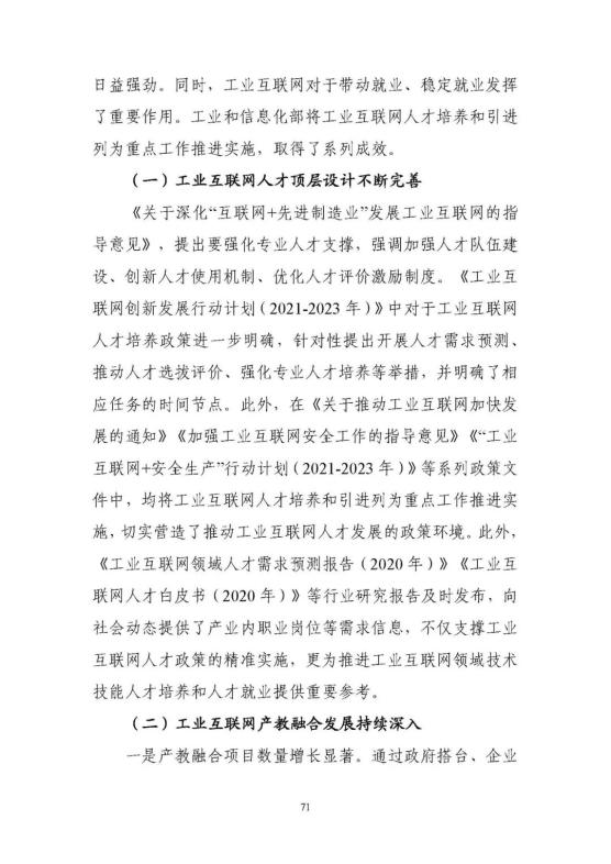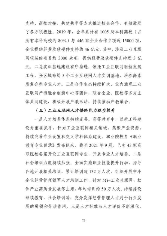 從小到大,產(chǎn)業(yè)新生態(tài)蓬勃發(fā)展。工業(yè)互聯(lián)網(wǎng)產(chǎn)業(yè)規(guī)模和參與的主體快速壯大,工業(yè)數(shù)字化裝備、工業(yè)自動(dòng)化、工業(yè)網(wǎng)絡(luò)、平臺(tái)、安全、數(shù)據(jù)等軟件相關(guān)的核心企業(yè)規(guī)模年均增速超過(guò)20%,工業(yè)互聯(lián)網(wǎng)相關(guān)領(lǐng)域的技術(shù)研究、標(biāo)準(zhǔn)研制和產(chǎn)業(yè)化基本與國(guó)際同步,已經(jīng)發(fā)布國(guó)家標(biāo)準(zhǔn)60項(xiàng),預(yù)計(jì)到2025年達(dá)到100項(xiàng)以上。人才體系扎實(shí)構(gòu)建,全國(guó)43家高職院校備案開(kāi)設(shè)工業(yè)互聯(lián)網(wǎng)專業(yè),工業(yè)互聯(lián)網(wǎng)人才實(shí)訓(xùn)基地在全國(guó)快速布局。
