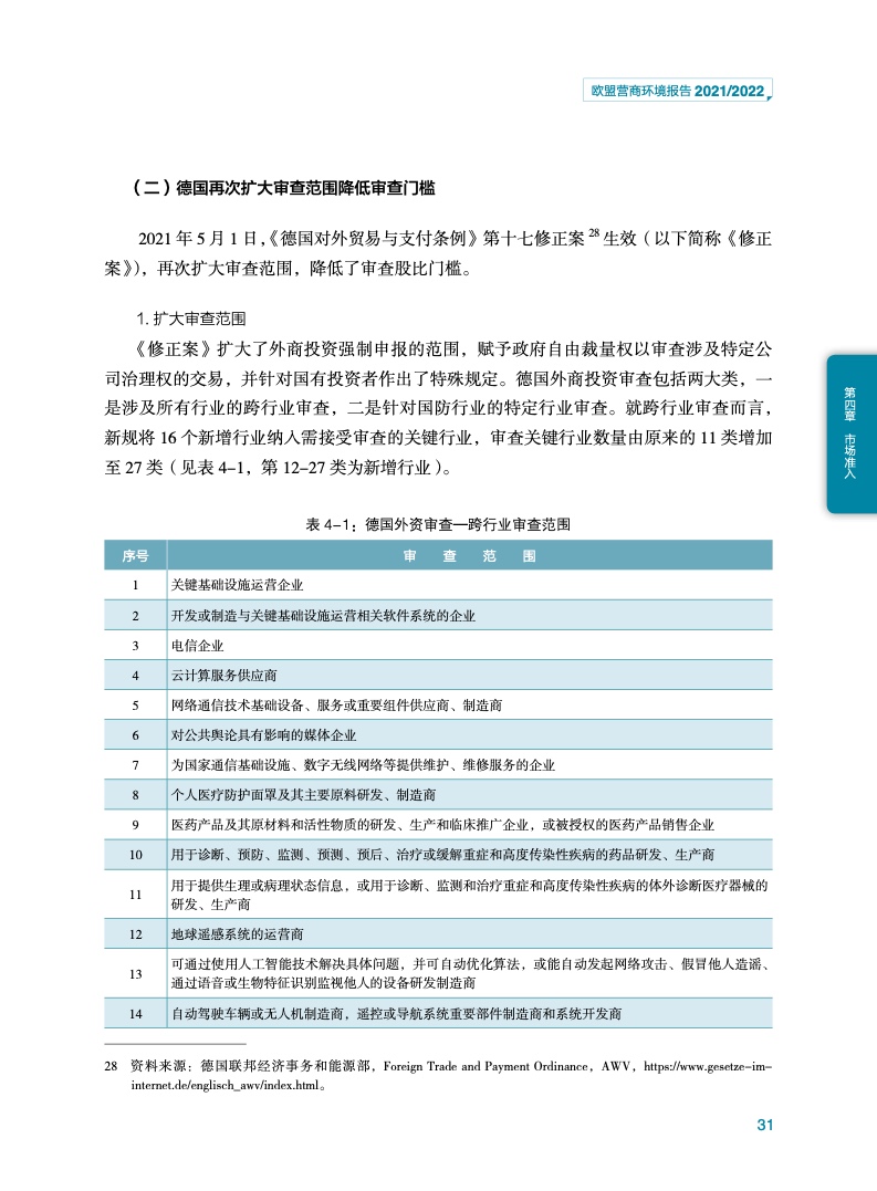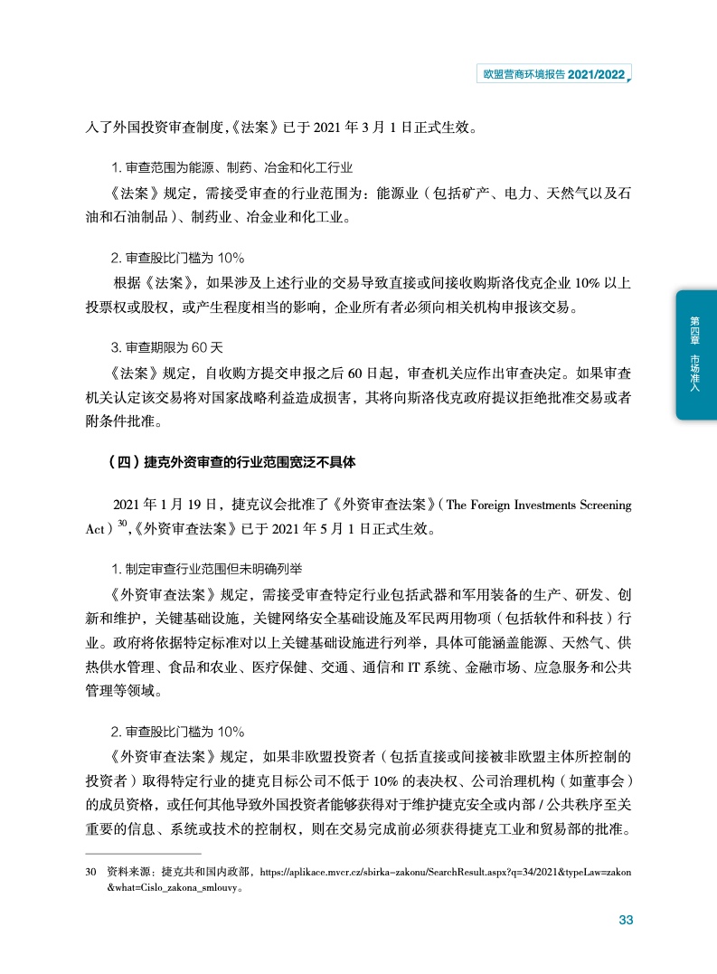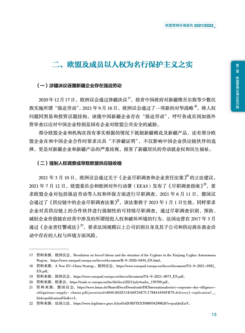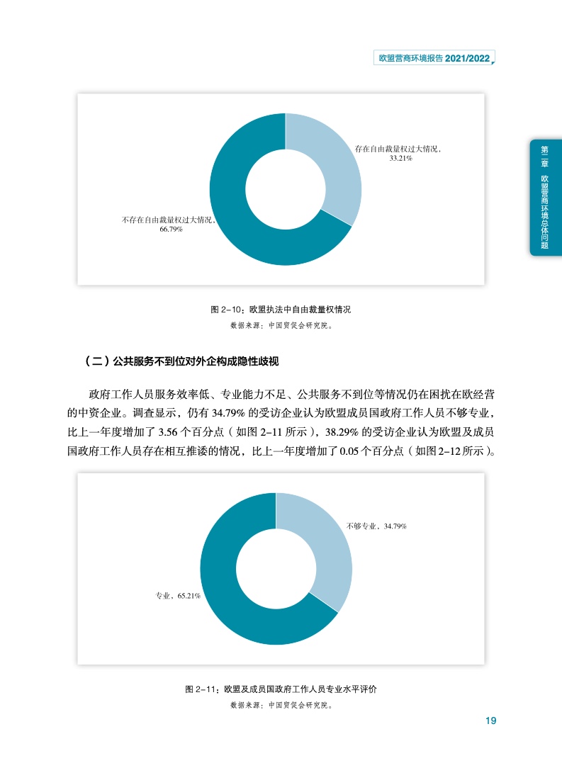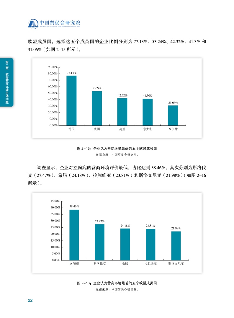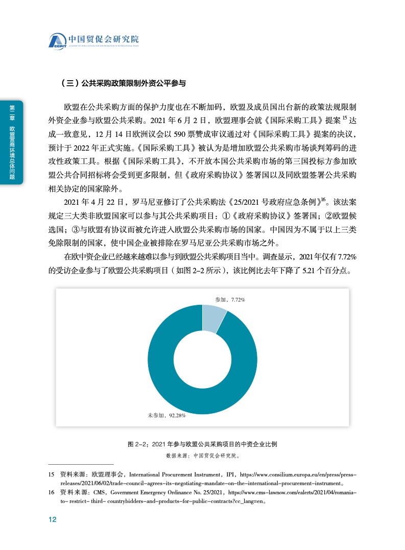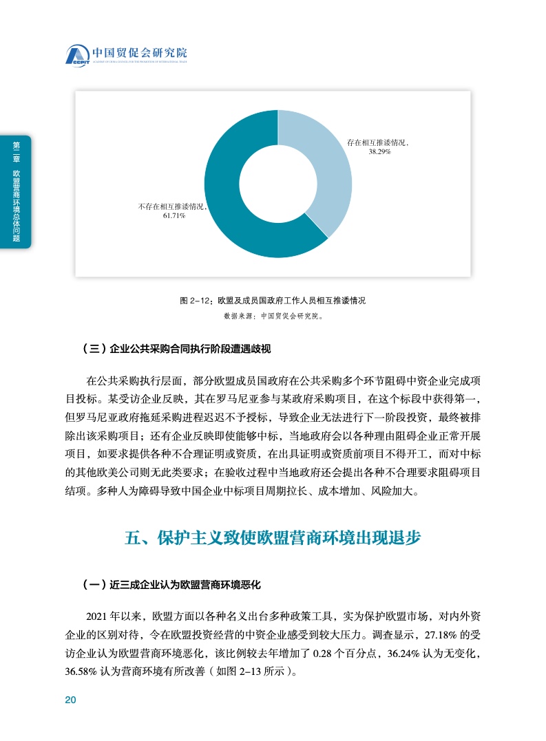《報(bào)告》認(rèn)為,歐盟的營(yíng)商環(huán)境仍有待改善,例如在外資審查、外國(guó)補(bǔ)貼審查、公共采購(gòu)審查等方面市場(chǎng)準(zhǔn)入壁壘較高,給與歐盟開(kāi)展貿(mào)易投資合作的中國(guó)企業(yè)造成不利影響。