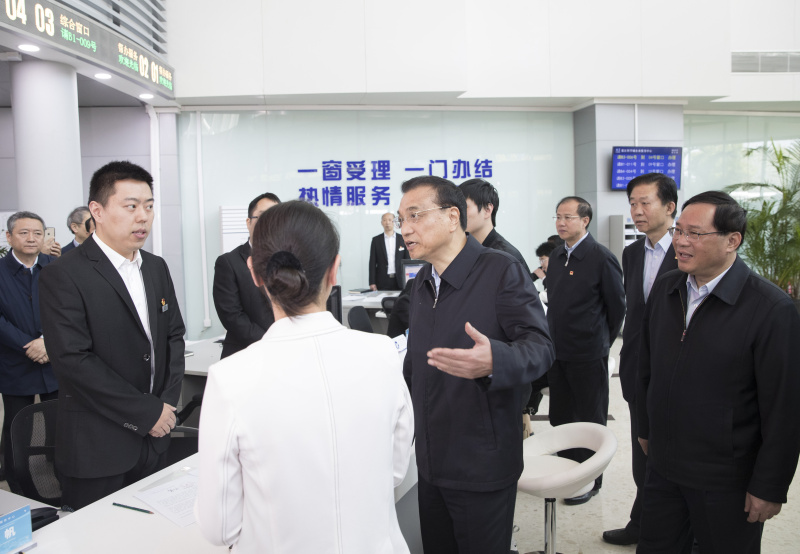 李克強總理4月10日考察中國(上海)自由貿(mào)易試驗區(qū)張江片區(qū)企業(yè)服務(wù)中心。當(dāng)?shù)刎撠?zé)人特意向總理匯報自貿(mào)區(qū)“一網(wǎng)通辦”等政務(wù)服務(wù)最新進展情況?!耙痪W(wǎng)通辦”是李克強今年在總理記者會上提出的“放管服”改革“六個一”之一。