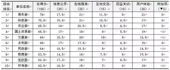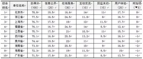 2016年中國政府網(wǎng)站發(fā)展領先單位排名結果如下: