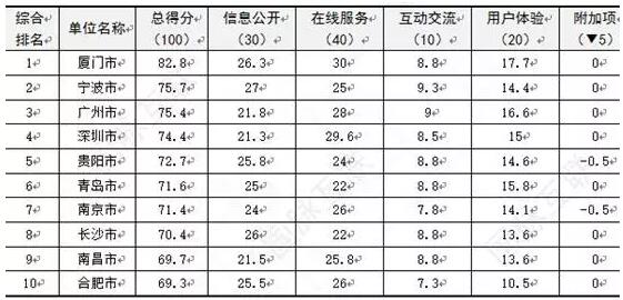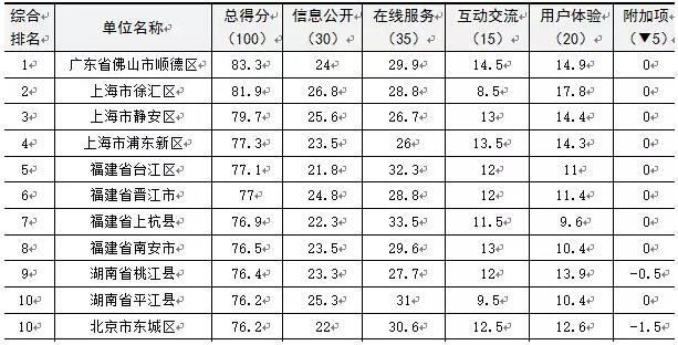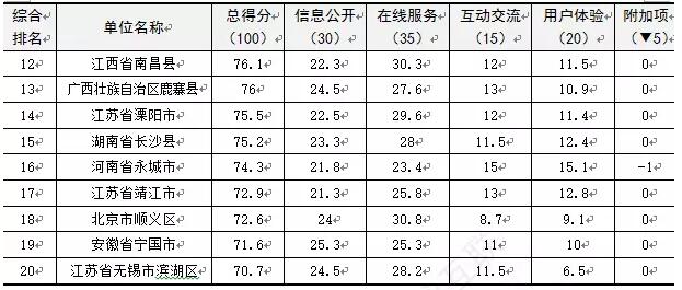 全國試點縣(市、區(qū))政府門戶網(wǎng)站績效得分排名表(前20名)