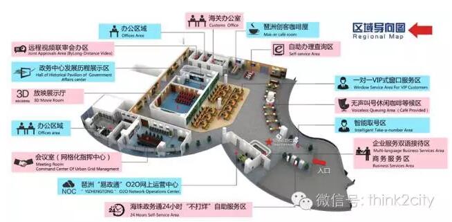 進(jìn)門后左邊的區(qū)域是二十四小時(shí)不打烊的自助服務(wù)區(qū),以及企業(yè)服務(wù)的雙語和多語的接待區(qū)、智能取號(hào)、一對(duì)一VIP式窗口區(qū)、無聲叫號(hào)的咖啡等候區(qū)、視頻區(qū)等。我們還建設(shè)了一個(gè)政企對(duì)接,能夠進(jìn)行各自情況展示的多功能的專業(yè)的放映大廳;還有海關(guān)的后臺(tái)辦公室,因?yàn)榉?wù)廣交會(huì),需要有大量的海關(guān)事項(xiàng)需要辦理;設(shè)有琶洲創(chuàng)客咖啡屋,自助辦理和政務(wù)公開信息查詢區(qū)。整個(gè)片區(qū)非常幽靜,沒有采用有聲叫號(hào),大量運(yùn)用智能化手段提供無聲叫號(hào)、休閑等候的氛圍。另設(shè)有嶺南文化的展示區(qū),我們把嶺南文化元素等各種文化元素也都放進(jìn)來了,因?yàn)榧热皇强蛷d,那么用戶來辦事的時(shí)候,就讓他覺得溫馨。大廳還采用了機(jī)器人送卡,他奶聲奶氣的請(qǐng)大家喝琶洲的創(chuàng)業(yè)咖啡。我們?cè)诂F(xiàn)場(chǎng)進(jìn)行了調(diào)研,發(fā)現(xiàn)每個(gè)人臉上都掛著開心的笑容,能夠給他一種到政府部門辦事,沒有衙門式的感覺,并且非常輕松。