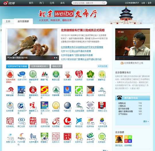 北京微博發(fā)布廳頁(yè)面部分截圖