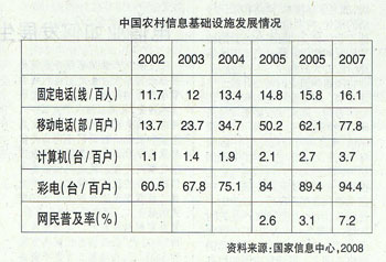 農(nóng)村人口對(duì)電腦設(shè)施的需求,也就是對(duì)超出生活基本設(shè)施的交往設(shè)施的需求很容易被人低估。首先,我們很多鄉(xiāng)鎮(zhèn)、城市近郊農(nóng)民消費(fèi)水平、消費(fèi)意識(shí)與縣城居民比較接近。其次,龐大的返鄉(xiāng)農(nóng)民工群體必然會(huì)把他們?cè)诔鞘兄斜怀醪脚嘤饋淼男滦蜕盍?xí)慣和消費(fèi)需求帶回去,尤其是體現(xiàn)在信息類消費(fèi)方面。這些人中大多數(shù)年輕人已經(jīng)習(xí)慣收發(fā)短信,打便宜的IP電話或者公話,以及上網(wǎng)吧娛樂、交朋友。也就是說,返鄉(xiāng)農(nóng)民工很可能恰恰是第一批完成初步信息化的農(nóng)民,這對(duì)于我國(guó)農(nóng)村信息化來說是一批寶貴的人才資源、用戶資源。當(dāng)信息化人才回流到鄉(xiāng)村的時(shí)候,如果能以強(qiáng)有力的手段、更大的政策力度推動(dòng)電腦、網(wǎng)絡(luò)、信息等資源要素也向鄉(xiāng)村匯聚,那么我們推了很久的農(nóng)村信息化就很可能快速升溫,達(dá)到沸點(diǎn)或燃點(diǎn)。因此,推進(jìn)“電腦下鄉(xiāng)”的意義在于以信息化手段武裝農(nóng)民,幫助他們尋找增收致富的信息,其重要性不亞于“家電下鄉(xiāng)”本身。