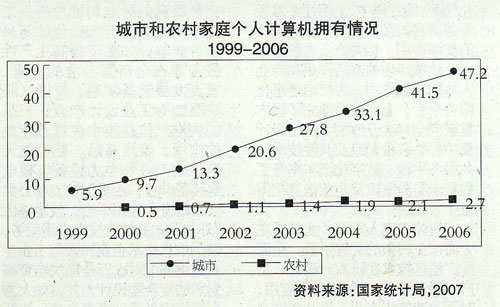 第三,電腦是提升未來農(nóng)村生活質(zhì)量和發(fā)展?jié)摿Φ闹匾侄?。?dāng)前,電腦與農(nóng)村基礎(chǔ)教育聯(lián)系在一起,農(nóng)村家庭購(gòu)買電腦,很大一部分是為了方便子女的學(xué)習(xí),希望兒女能夠率先掌握最新的科技工具,在與城里學(xué)生的競(jìng)爭(zhēng)中不落伍、不掉隊(duì)。因此,農(nóng)村家庭購(gòu)買電腦可以看做是一項(xiàng)教育投資。實(shí)際上,當(dāng)前農(nóng)村基礎(chǔ)教育與城市的差距在日益拉大,除了因?yàn)榻處熧|(zhì)量外,相當(dāng)一部分是因?yàn)閷W(xué)生學(xué)習(xí)工具和手段上的差距。從這個(gè)意義上講,“電腦下鄉(xiāng)”也是縮小城鄉(xiāng)差距的一項(xiàng)重要舉措。