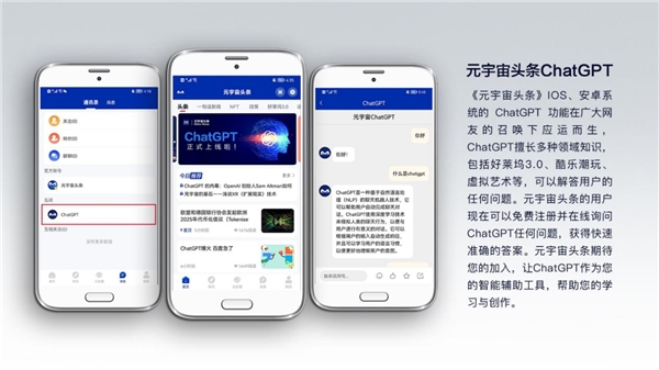 元宇宙頭條國際中文版是為中國同胞和全世界華人服務的,很多用戶反映ChatGPT因國內無法注冊賬號,大量中國用戶被拒于門外。元宇宙頭條團隊當機立斷開發(fā)自己的ChatGPT。我們在短期內攻關完成元宇宙頭條人工智能開發(fā),2月9日審核并通過,并正式通過蘋果和安卓上線,可以說是在第 一時間為大家打通并開放了ChatGPT平臺,這也意味著元宇宙頭條將成為全世界第 一個搭配ChatGPT的中文APP。在幾天后,我們也同步上線了元宇宙頭條ChatGPT網頁版本。作為全球第 一家元宇宙融媒體平臺,我們期待與大家共同探索人工智能和數字世界的奇妙,深度體驗元宇宙為人類社會帶來的革命與更新,同時用戶流量的上升也會為元宇宙頭條APP帶來雙贏的局面。