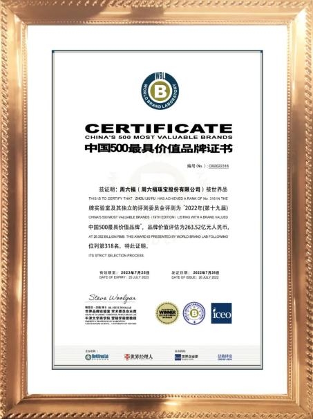 十日畫(huà)一水,五日畫(huà)一石。多年來(lái),周六福始終以用戶需求為導(dǎo)向,洞察當(dāng)代消費(fèi)者對(duì)于珠寶多樣化的需求,潛心打造獨(dú)特設(shè)計(jì),品質(zhì)卓越的珠寶產(chǎn)品,博得眾多追求時(shí)尚魅力與品質(zhì)生活的消費(fèi)者的喜愛(ài)。2022年,周六福與 CCTV-1《大國(guó)品牌》達(dá)成深度合作,強(qiáng)勢(shì)攜手,共同開(kāi)啟全新賽道!連續(xù)7年榮獲中國(guó)500最具價(jià)值品牌,品牌價(jià)值達(dá)263.52億元,同時(shí)獲得“深圳知名品牌”、”深圳品牌百?gòu)?qiáng)企業(yè)”等多項(xiàng)榮譽(yù);。2022年9月更是取得了FIFA 2022卡爾塔世界杯貴金屬首飾銷售官方授權(quán),多元聯(lián)合、強(qiáng)強(qiáng)出線!