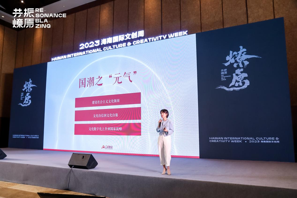 以《點亮數(shù)字時代下的國潮之光》為題,人民創(chuàng)意副總裁王婧從數(shù)字時代下國潮發(fā)展的新案例、新變化和新方向著眼,從文化與產(chǎn)業(yè)、傳媒、科技、場景、消費等具體案例為切入點,創(chuàng)新性提出:隨著中國優(yōu)秀傳統(tǒng)文化越來越成為文化產(chǎn)品、內(nèi)容創(chuàng)造和消費場景的靈感,中國優(yōu)秀傳統(tǒng)文化傳承和創(chuàng)新的文化邊界正在逐漸拓寬。文化從傳統(tǒng)意義上的軟實力,躍升成為一種推動產(chǎn)業(yè)驅(qū)動,賦能產(chǎn)業(yè)發(fā)展的生產(chǎn)力。在此背景下,國潮也從一種標(biāo)識、標(biāo)簽、圖庫,成為一種“開放、多元、融匯”思維的象征,成為推動中國傳統(tǒng)文化和潮流IP延伸、產(chǎn)品研發(fā)上的方法論。