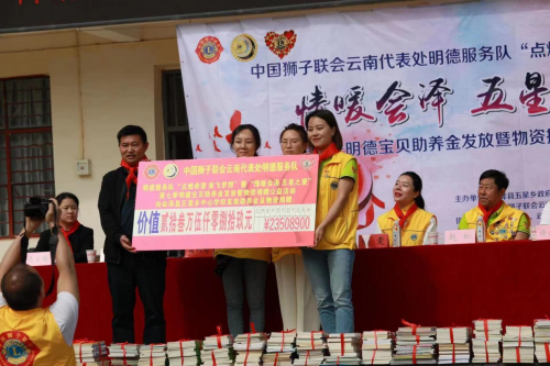 2023年4月22日—23日,由中國(guó)獅子聯(lián)會(huì)云南代表處明德服務(wù)隊(duì)主辦,云南代表處和協(xié)服務(wù)隊(duì)、云之南服務(wù)隊(duì)、道合服務(wù)隊(duì)、圣火服務(wù)隊(duì)、慈愛服務(wù)隊(duì)、慈王服務(wù)隊(duì)、太陽服務(wù)隊(duì)、龍之隊(duì)服務(wù)隊(duì)、紅獅服務(wù)隊(duì)、幸福服務(wù)隊(duì)、勇獅服務(wù)隊(duì)、廣東獅子會(huì)佛山代表處獅誠(chéng)服務(wù)隊(duì)等12支服務(wù)隊(duì)聯(lián)合服務(wù),在會(huì)澤縣舉行了為期2天的助養(yǎng)金發(fā)放暨物資捐贈(zèng)公益活動(dòng)。本次活動(dòng)對(duì)會(huì)澤新街鄉(xiāng)、五星鄉(xiāng)捐贈(zèng)物資及善款總金額為270484.00元。