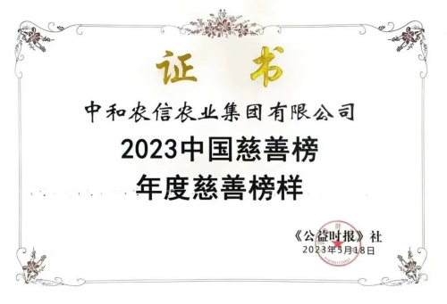 “中國慈善榜”是由《公益時報》社于2004年創(chuàng)立的全國性權(quán) 威慈善榜單,旨在尋找并致敬慈善榜樣,用榜樣的力量激發(fā)社會向上向善。2023年正值“中國慈善榜”發(fā)布二十周年,在這樣重要的節(jié)點,中和農(nóng)信被授予“年度慈善榜樣”稱號,無疑是對中和農(nóng)信熱心公益、積極履行企業(yè)社會責任整體表現(xiàn)的認可與鼓勵。
