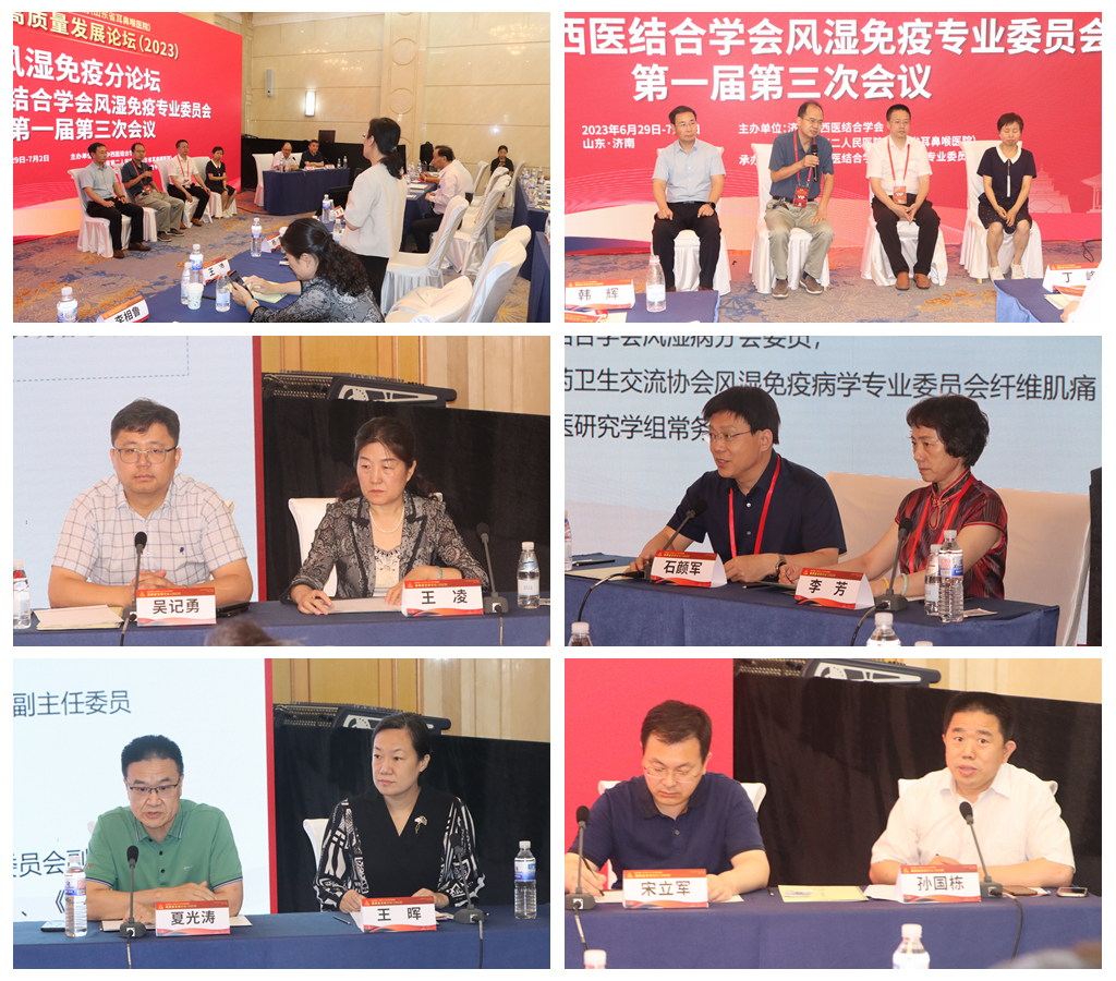 為促進(jìn)濟(jì)南市風(fēng)濕病學(xué)的學(xué)術(shù)交流與發(fā)展,共同關(guān)注疑難病診治,更好地滿足人民群眾日益增長(zhǎng)的就醫(yī)需求,7月2日,2023濟(jì)南中西醫(yī)結(jié)合學(xué)會(huì)風(fēng)濕免疫專業(yè)委員會(huì)會(huì)議在山東大廈舉行。本次論壇同時(shí)作為濟(jì)南中西醫(yī)結(jié)合學(xué)會(huì)風(fēng)濕免疫專業(yè)委員會(huì)第 一屆第三次會(huì)議。通過線上與線下相結(jié)合的方式,為大眾帶來前沿的學(xué)術(shù)動(dòng)態(tài)、權(quán) 威的學(xué)術(shù)解讀、豐厚的學(xué)術(shù)盛宴。濟(jì)南中醫(yī)風(fēng)濕病醫(yī)院張彥寬副院長(zhǎng)、張戰(zhàn)峰主任、房立花主任等受邀出席參加此次會(huì)議。