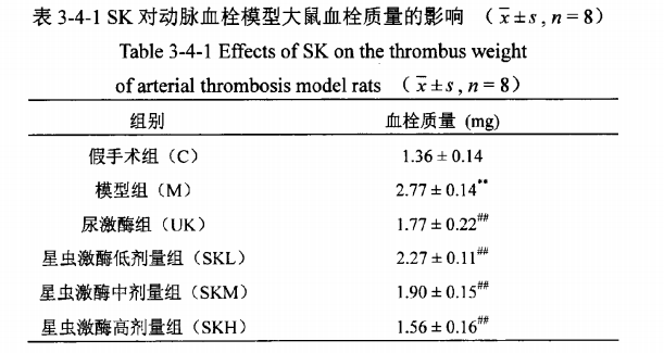 星蟲激酶酶學性質穩(wěn)定,對其體外溶栓活性研究發(fā)現(xiàn),星蟲激酶不僅具有直接和間接降解纖維蛋白的作用,還能夠降解纖維蛋白原,對血栓的形成影響實驗發(fā)現(xiàn)與模型組相比,星蟲激酶對動脈血栓的形成具有顯著抑制作用,血管組織形態(tài)和血液相關指標也得到顯著改善。(摘自萬方數(shù)據(jù))
