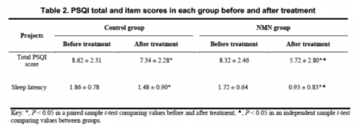 中國南方科技大學的研究團隊在American Journal of Translational Medicine上發(fā)表文章,發(fā)現(xiàn)NMN可以應對睡眠質量下降,改善失眠。研究團隊對29位45歲~75歲中老年人群的睡眠狀況進行了為期12周的PSQI測試,結果發(fā)現(xiàn)與未服用 NMN 的受試者相比,服用 NMN 的受試者在評估中的得分呈現(xiàn)明顯的高分。且NMN 組的入睡時間(睡眠潛伏期)也有所改善。同時分析智能手環(huán)(華為手環(huán) 6)檢測的睡眠狀況,NMN組夜間深睡期和快速眼動睡眠時間明顯增加。