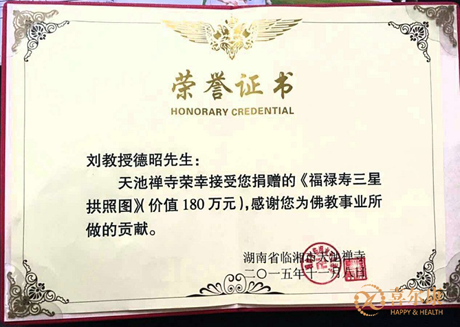 ▲劉德昭先生捐款佛教事業(yè)榮譽(yù)證書