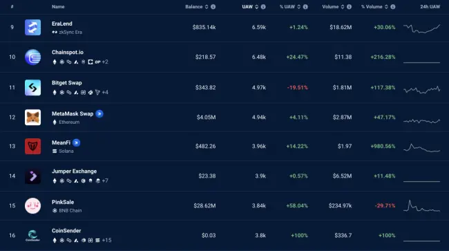 根據(jù) CoinGecko 的統(tǒng)計,Bitget錢包在全球最受歡迎加密熱錢包中排名第七。同時,DappRadar 數(shù)據(jù)也顯示, Bitget錢包的 Swap 在交易量和活躍用戶數(shù)上,經(jīng)常在所有 DeFi 項目中排名前十,和 MetaMask 基本持平,甚至有時領(lǐng) 先。在社區(qū)反饋中,Swap 交易也是用戶最喜愛和最常用的功能,順滑的交易體驗收到很多好評。