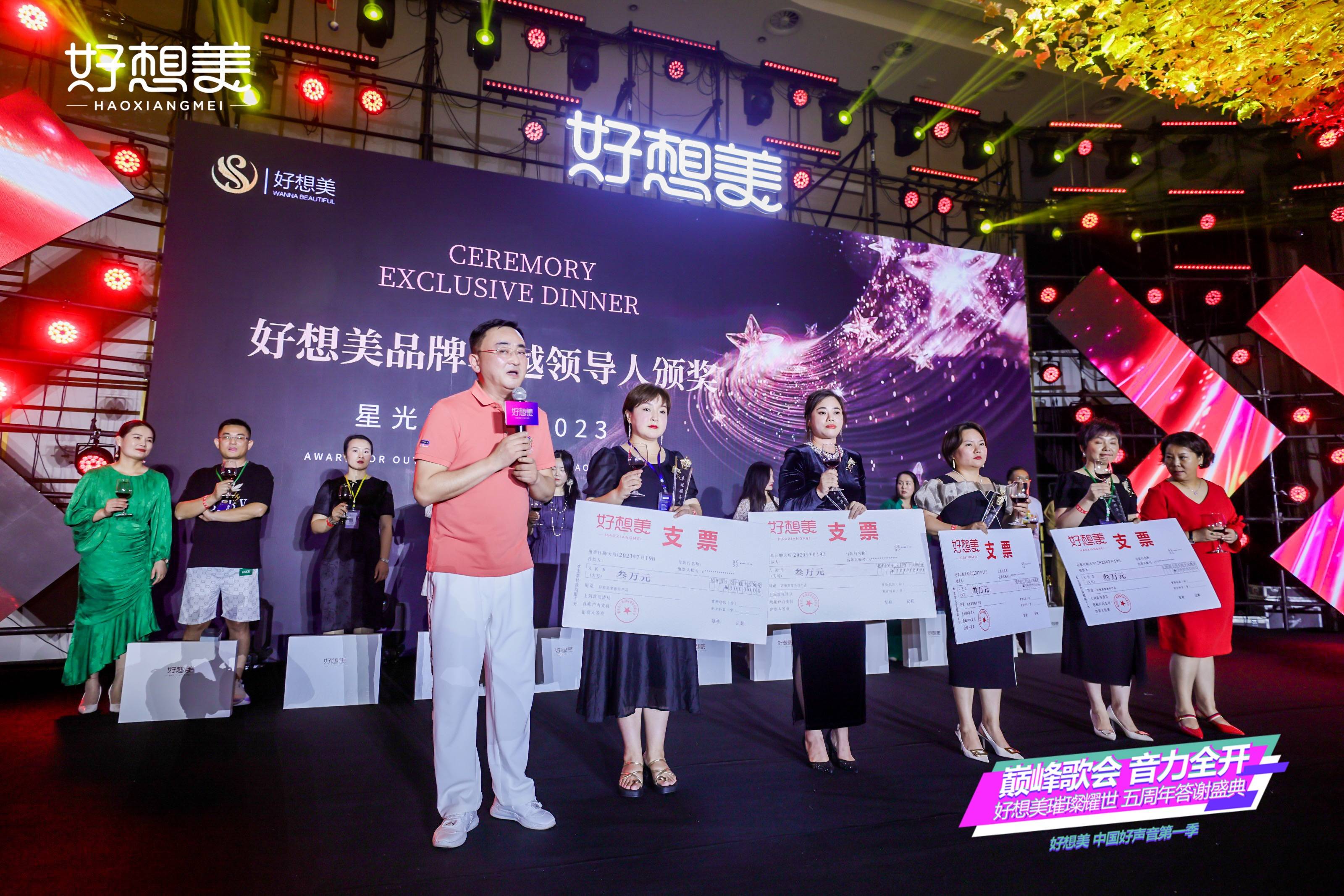 好想美的領 導們現(xiàn)場為諸位精誠合作,一路支持的團隊、嘉賓頒發(fā)獎項。在現(xiàn)場眾位嘉賓的見證下,好想美五周年在祝福感恩中收獲圓滿。