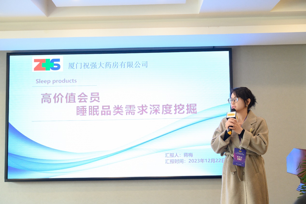 廈門(mén)祝強(qiáng)大藥房有限公司的蔣梅女士進(jìn)行了“高價(jià)值會(huì)員睡眠品類(lèi)需求深度挖掘”的分享,講述了祝強(qiáng)與伍舒芳相互合作,通過(guò)活動(dòng)配合,激發(fā)老客戶(hù)復(fù)購(gòu)的案例,總結(jié)出了老客戶(hù)復(fù)購(gòu)的經(jīng)驗(yàn)和方法論。