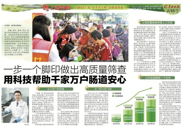 康立明生物為廣東省及全國多個城市的區(qū)、縣、鎮(zhèn)開展的腸道健康篩查項目提供了有力支持,并取得了優(yōu)異的篩查效果。這些項目讓居民在家門口就能獲得高質量的腸癌篩查,提前發(fā)現(xiàn)了上千例早期腸癌和癌前病變,不僅實現(xiàn)了腸癌的早診早治,還提高了當地居民對腸癌的認識和重視程度,獲得了良好的口碑和贊譽。