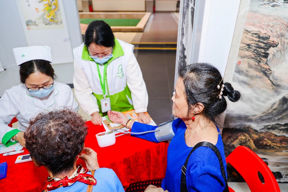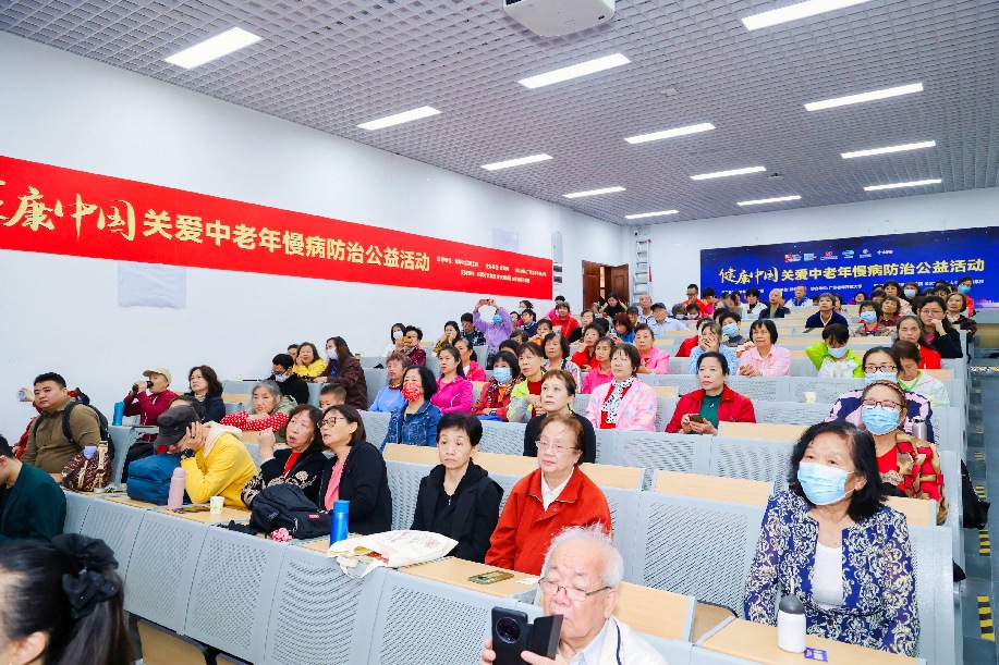 廣州開放大學(xué)黨委副書 記、校長熊軍,廣州老年開放大學(xué)副校長鄭亞,新華網(wǎng)廣東頻道內(nèi)容總監(jiān)王航帆、金水寶制藥大健康營銷公司NKA部負(fù)責(zé)人藍(lán)鑫、大參林醫(yī)藥集團(tuán)慢病管理部副總監(jiān)陳婧等領(lǐng) 導(dǎo)及嘉賓參加了活動(dòng),同老年開放大學(xué)學(xué)員及來自附近社區(qū)的中老年群眾二百余人一起見證了“健康中國·關(guān)愛中老年慢病防治公益活動(dòng)”的啟動(dòng)。