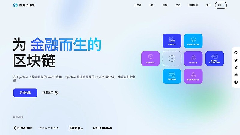 Injective 是一條專為 DeFi 打造,旨在顛覆傳統(tǒng)金融領(lǐng)域的區(qū)塊鏈。Injective 獨(dú)一無二地提供了開發(fā)者可以使用的強(qiáng)大核心金融基礎(chǔ)設(shè)施原語,包括完全去中心化的抗 MEV 鏈上訂單簿模塊、預(yù)言機(jī)模塊、借貸模塊等。