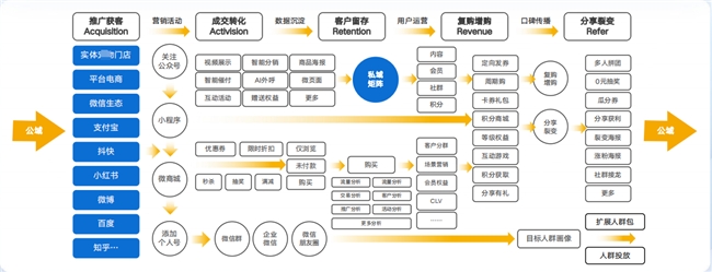數(shù)字化轉(zhuǎn)型和全域趨勢(shì)下,全域經(jīng)營(yíng)模式有效的幫助企業(yè)重新開始理解流量、統(tǒng)籌流量、串聯(lián)流量和運(yùn)用流量,幫助企業(yè)覆蓋更廣泛的用戶群體和實(shí)現(xiàn)不同的營(yíng)銷目標(biāo),實(shí)現(xiàn)高復(fù)購(gòu)率和留存率。
