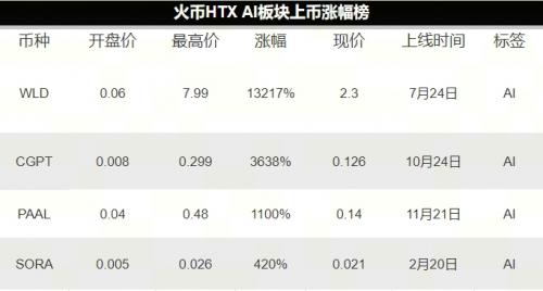 HTX 對 AI 賽道保持持續(xù)關(guān)注,分別在 2023 年陸續(xù)上新了 AI 賽道相關(guān)的 WLD、CGPT、PAAL,并在最近上線了 SORA。