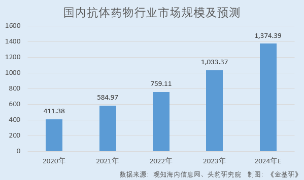據(jù)觀知海內(nèi)信息網(wǎng)數(shù)據(jù),2020-2023年,國內(nèi)抗體藥物行業(yè)市場規(guī)模分別為411.38億元、584.97億元、759.11億元、1,033.37億元。頭豹研究院預(yù)計,2024-2028年,國內(nèi)抗體藥物行業(yè)市場規(guī)模由1,374.39億元增長至3,530.76億元,期間年復(fù)合增長率26.60%。