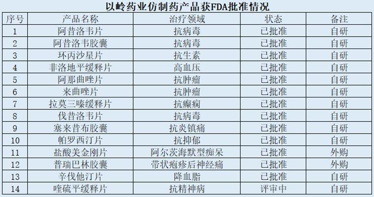 在國內(nèi)市場,以嶺萬洲利用“歐美共線”的申報(bào)政策,將獲得美國FDA批準(zhǔn)的4個(gè)ANDA產(chǎn)品轉(zhuǎn)報(bào)國內(nèi)。另外,針對(duì)國內(nèi)市場開發(fā)的化藥產(chǎn)品,以嶺藥業(yè)已有13個(gè)產(chǎn)品通過一致性評(píng)價(jià)。