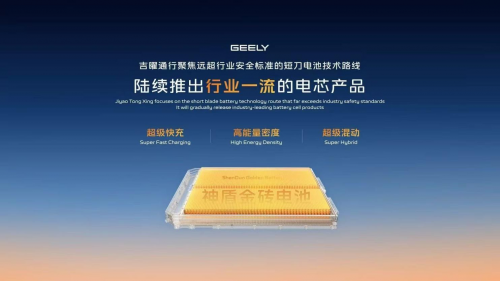 今年4月23日,吉利整合旗下電池業(yè)務,成立浙江吉曜通行能源科技有限公司(簡稱“吉曜通行”),將原有的金磚電池、神盾短刀電池,統(tǒng)一為神盾金磚電池品牌。其中,神盾代表吉利極致的電池安全系統(tǒng),金磚代表吉利行業(yè)領先的電芯技術,實現(xiàn)吉利自研自產(chǎn)電池安全系統(tǒng)與電芯產(chǎn)品的“強強合體”。