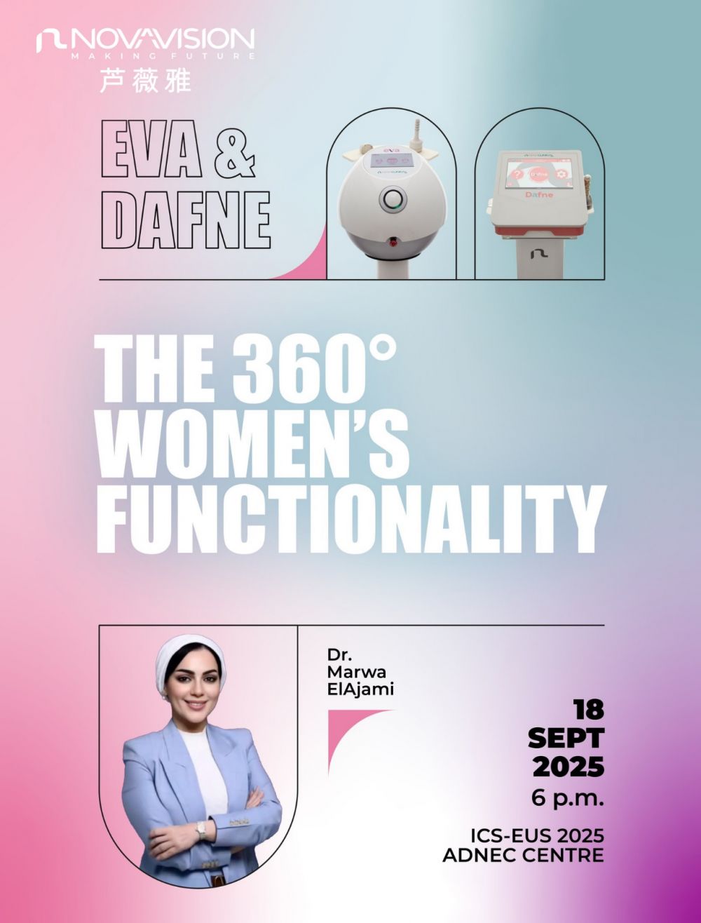 在會議期間,蘆薇雅成功主辦了題為“360度女性功能”的專題科學(xué)研討會。研討會特邀阿布扎比的Marwa ElAjami博士擔(dān)任主講,與會人員深入探討了EVA私密管家與Dafne盆底專家在盆底問題管理中的前沿應(yīng)用與重要作用。
