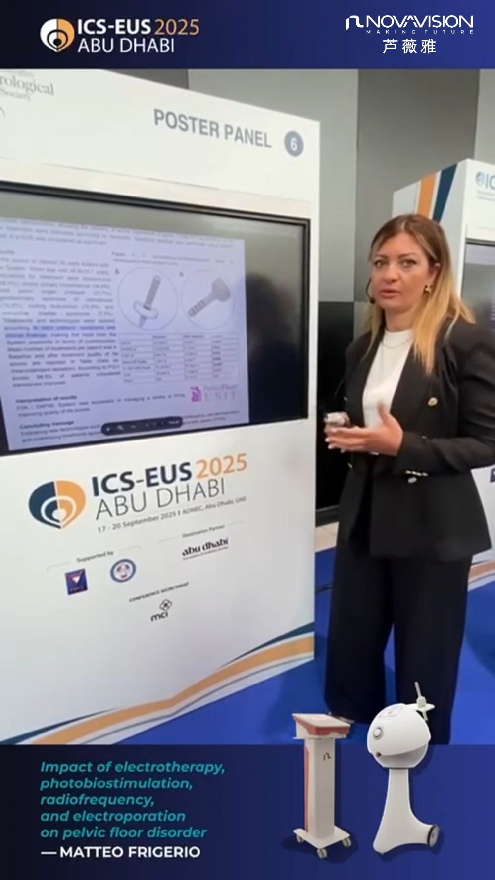 本屆大會上,一項由蘆薇雅支持的科學(xué)研究發(fā)布了重要結(jié)論。該研究由意大利蒙扎圣杰拉爾多醫(yī)院IRCCS基金會的Dr. Matteo Frigerio主導(dǎo),他在會議現(xiàn)場發(fā)表了題為《電療、光生物刺激、射頻和電穿孔對盆底疾病的影響》的主題演講,演講指出:“采用蘆薇雅EVA私密管家與Dafne盆底專家進(jìn)行干預(yù),能顯著提升使用者生活質(zhì)量,其中88.5%的參與者反饋感受到明顯效果。”